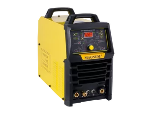 Urządzenie Magnum Tig THF 235 AC/DC PULS jest profesjonalną spawarką inwertorową przeznaczoną do spawania metodą TIG HF (z bezstykowym zajarzaniem łuku spawalniczego) prądem przemiennym AC oraz stałym DC. Magnum Tig THF 235 zapewnia doskonałą wydajność w spawaniu aluminium i jego stopów, stali niestopowej, niskostopowej, wysokostopowej, tytanu oraz innych spawalnych metali i stopów. Urządzeniem można również spawać metodą MMA z wykorzystaniem topliwych elektrod otulonych. Spawarka zasilana jest z sieci jednofazowej 230 V, posiada wysoki 60% cykl pracy przy prądzie 200 A co pozwala na wykorzystanie jej w różnych segmentach przemysłu. Urządzenie posiada intuicyjny, łatwy w obsłudze panel sterowania, który pozwala na szybki i precyzyjny dobór poszczególnych parametrów spawania.