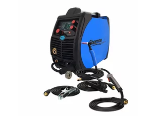 Synergiczna spawarka Sherman DIGIMIG 220 LCD jest urządzeniem do spawania ręcznego stali i metali kolorowych metodami MIG/MAG, MMA (elektrodą otuloną) i TIG Lift. Może być również stosowana do lutospawania cienkich (do 3 mm) blach ocynkowanych. Cyfrowe sterowanie pozwala na spawanie według zaprogramowanych w urządzeniu ustawień, a także pełną regulację parametrów, wybór gazu, grubość materiału, grubość spoiwa i dynamikę łuku w metodzie MIG/MAG według własnych potrzeb. Zastosowanie w spawarce ustawień synergicznych dla stali węglowej i stopów aluminium znacznie upraszcza jej obsługę i pozwala na użytkowanie przez osoby z mniejszym doświadczeniem oraz hobbystów. Dzięki zastosowaniu funkcji Fan Stop wyłączającej wentylator przy niskim obciążeniu spawarki znacznie ograniczony został poziom hałasu.