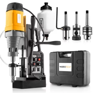 WIERTARKA MAGNETYCZNA WABROTECH WT28RE ZESTAW WIELOFUNKCYJNY + Uchwyt wiertarski B16 3-16mm + Uchwyt WELDON 19mm + Uchwyt do gwintowania B18 M5-M20 Dane techniczne: Uchwyt narzędziowy: Wrzeciono stożkowe MT3 Moc silnika: 2080 Watt Zasilanie: 230 V / 50 Hz Łagodny rozruch (soft-start):
