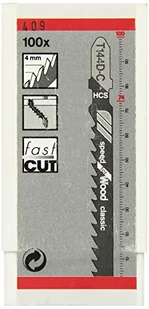 Brzeszczot T 144 D-CBrzeszczot T 144 D-C, HCS, zęby krzyżowane, szlifowane, do miękkiego drewna 85-50 mm, płyt wiórowych, blatów, płyt pilśniowychDane techniczne: Długość netto: 100 mm $176 Zawartość: 100 szt.