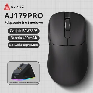 Ajazz Mysz bezprzewodowa AJ179PRO Baza ładująca PAW3395 8K Częstotliwość powrotu DPI26000