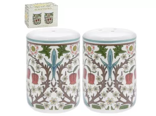 Komplet dwóch porcelanowych pojemników na sól i pieprz - Blackthorn Komplet jest ozdobiony roślinno-kwiatowymi ornamentami inspirowanymi staroangielską tapetą manufaktury William Morris. Pojemnki posiadają pod spodem silikonowe zatyczki, przez które uzupełnia się ich zawartość. Komplet znajduje się w tekturowym pudełku z tym samym otywem. Inne artykuły z kolekcji Blackthorn Wymiary: średnica: 4. 5 cm, wysokość: