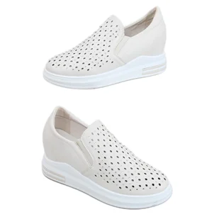 Trampki damskie na ukrytym koturnie o wysokości 7 cm. Ten wyjątkowy model ma fason typu slip-on z niepowtarzalnym, ażurowym wzorem urozmaiconym błyszczącymi cyrkoniami. . . Buty na ukrytym koturnie są idealne dla kobiet, które cenią sobie wygodę, a jednocześnie chcą optycznie wydłużyć swoje nogi : ) Materiał zewnętrzny skóra ekologiczna. . . . Tabela rozmiarów