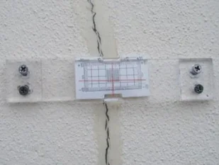 Szczelinomierz płytkowy prosty -do monitoriowania zmian szerokości szczelin w murach, ścianach, itp. Wykonany jest z trwałego tworzywa sztucznego - szkła akrylowego (pleksiglas) przezroczystego i matowego białego. Górna płyta pokazuje precyzyjną siatkę z liniami przecinającymi się co 0,3 mm , natomiast dolna posiada dwie nadrukowane linie w układzie poziomym jak i pionowym. Szczelinomierz można mocować na klej lub za pomocą kołków (wkrętów brak w zestawie) - posiada cztery otwory o średnicy 4mm