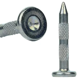 Wysokiej jakości punkt pomiarowy, stalowy, chropowaty. Ocynkowany i hartowany na zimno. Do stosowania w podłożach twardych, np. w betonie i asfalcie. Mała, płaska główka z centrem ułatwiającym ustawienie tachimetru nad punktem.