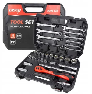 Zestaw Narzędzi Nasadowych Klucze Nasadki Cr-V 1/2'' 32 El. Adapter Grzechotka Disen