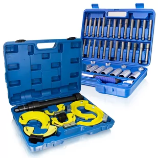 Uniwersalny zestaw do mocowania / demontażu amortyzatorów. Pasuje do większości samochodów. W zestawie praktyczne etui z tworzywa sztucznego. Nasadki sześciokątne długie do luzowania: 14 - 15 - 16 - 17 - 18 - 19 - 21 - 22 - 24 - 27 mm, 1x nasadka do luzowania: