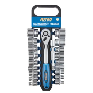 Zestaw kluczy nasadowych NITEO z 18 nasadkami to niezbędne wyposażenie każdego domu i garażu! Przełącznik umożliwia łatwą zmianę kierunku pracy, a przedłużka ułatwia pracę w trudno dostępnych miejscach. Stal chromowo-wanadowa, z której wykonano nasadki, jest niezwykle wytrzymała i odporna na korozję.