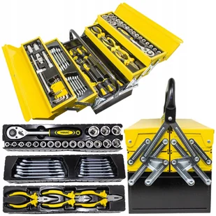 SKRZYNKA NARZĘDZIOWA Z KLUCZAMI, WTYCZKAMI, ŚRUBOKRĘTAMI 87 szt.