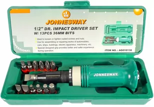 Jonnesway Wkrętak udarowy 1/2" z osłoną + końcówki 13szt. - AG010138