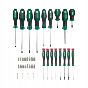 PARKSIDE Zestaw bitów i wkrętaków z uchwytem ściennym, 37 elementów Produkt powystawowy brak 4 bitów i 3 śrubokrętów.Brak bitów H4, H5, H6, T20. I śrubokręta...