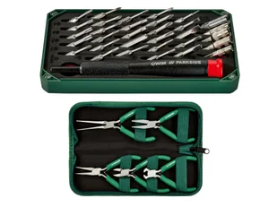 torba: ok. 24,5 x 7,7 x 3 cm Waga: zestaw wkrętaków precyzyjnych: ok. 170 g; z estaw szczypiec precyzyjnych: ok. 385 g