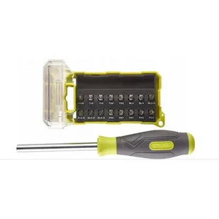 Zestaw do wkręcania marki Ryobi jest doskonałym narzędziem do użycia w każdym miejscu w domu. Niezwykle wygodną i łatwą obsługę gwarantuje ergonomiczny uchwyt z termoplastycznej gumy. Trzonek z litej stali o długości 100 mm z 1/4 calowym magnetycznym uchwytem grotu pozwala na szybką wymianę. W wyposażeniu znajduje się 16 sztuk różnorodnych bitów.