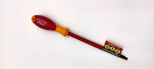 Wkrętak elektrotechniczny 6,5x150mm 1000V - 10579 Grot wykonany ze stali molibdenowo-chromowo-wanadowej odpornej na ścieranie i skręcanie. Twardość 58 HRC +/-2%. Rękojeść wykonana z wysokiej jakości materiałw (ABS oraz kauczuk naturalny). Rozmiar: 6,5mm Długość: 150mm Kształt końcówki: