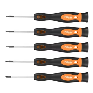 Wkrętaki precyzyjne, zestaw 5 szt. , NEO 04-224 ⭐Wkrętaki precyzyjne, zestaw 5 szt. 04-224 marki NEO oferują w zestawie narzędzia w rozmiarach: 1,5 x 50 mm, 2 x 50 mm, 2,5 x 50 mm, PH00 x 50 mm, PH0 x 50 mm. Charakterystyka produktu: