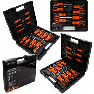 - 3 krzyżowe (PH0, PH1, PH2) - 5 TORX (T10, 15, 20, 25, 30) - 6 sześciokątnych (2, 2.5, 3, 4, 5, 6) - 3 typu gwiazdka (PZ0, PZ1, PZ2)