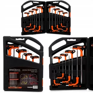 - 8 wkrętaków typu "T" imbus (2.0x75, 2.5x75, 3.0x100, 4.0x100, 5.0x150, 6.0x150, 8.0x200, 10.0x200mm) - 8 wkrętaków typu "T" torx (T10x75, T15x75, T20x100, T25x100, T30x150, T40x150, T45x200, T50x200)