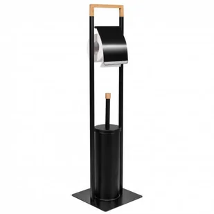 Stojak na papier toaletowy i szczotkę do WC, uchwyt czarny, bambus