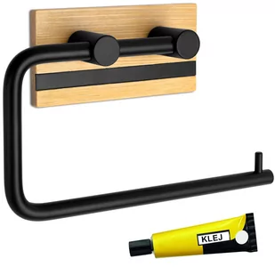 Uchwyt na papier toaletowy Demak został wykonany ze stali nierdzewnej malowanej proszkowo i z naturalnego drewna bambusowego. Uchwyt o nowoczesnym wyglądzie i wykończony na kolor głębokiej, matowej czerni. Czarny kolor sprawia, że doskonale sprawdzi się w każdej łazience.