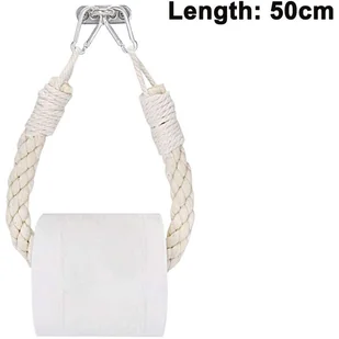 1. 【Materiał】: Uchwyt na papier toaletowy wykonany jest z naturalnej liny jutowej i stalowego haka w stylu retro. Grubość grubej liny owijającej rolkę papieru wynosi 20 mm (0,79 cala). Całkowita długość bawełnianego sznurka i metalowego haka wynosi 40/50 cm. Koszyk nadaje się do rolek papieru toaletowego z otworem o średnicy 1,25 cala.