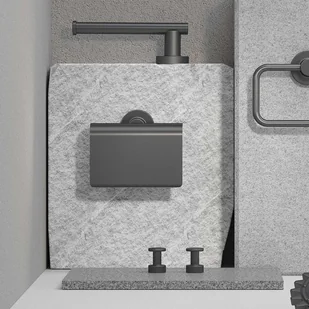 Wieszak na papier toaletowy z kolekcji Architecture. Aby akcesoria zachowały swój połysk, należy unikać stosowania ściernych środków czyszczących. Czyścić wieszak miękką ściereczką i używać łagodnych detergentów na ściereczce, a nie bezpośrednio na wieszaku.