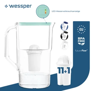 Komponenty niezawierające bisfenolu A (BPA)Przetestowany produktWykonany z wysokiej jakości tworzywa sztucznego dzbanek filtrujący wodę D1 SOLID FutureFlow™ jest wolny od szkodliwego BPA (bisfenolu A) dzięki zastosowaniu materiałów i produktów dopuszczonych do kontaktu z żywnością. Twoja dobra wodaDzbanek Wessper D1 SOLID FutureFlow™, wyposażony w filtr aquaclassic, zapewnia czystą wodę o doskonałym smaku dzięki mieszance filtrów z węglem aktywnym impregnowanym srebrem i żywicą jonowymienną. Wydajność w każdym gramieImponująca, 77-gramowa mieszanka filtracyjna filtra aquaclassic STANDARD to idealny wybór dla każdego, kto chce filtrować wodę najwyższej jakości. Duża ilość mieszanki filtracyjnej gwarantuje skuteczną filtrację i długotrwałą ochronę przed niepożądanymi substancjami w wodzie. Filtr Wessper aquaclassic: