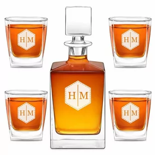 Karafka do whisky cube z 4 szklankami i grawerowanymi inicjałami