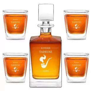 Karafka do whisky cube z 4 szklankami i grawerem dla konesera na urodziny