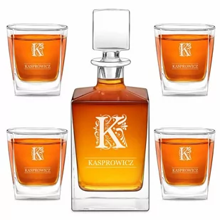 Spersonalizowana karafka do whisky cube z 4 szklankami capitol i grawerunkiem dla konesera whisky na wyjątkową okazję.