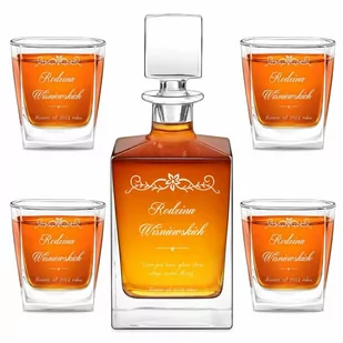 Spersonalizowana karafka do whisky cube z 4 szklankami capitol i grawerunkiem dla konesera whisky na wyjątkową okazję.