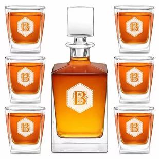Spersonalizowana karafka do whisky cube z 6 szklankami capitol i grawerunkiem dla konesera whisky na wyjątkową okazję.