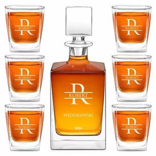 Spersonalizowana karafka do whisky cube z 6 szklankami capitol i grawerunkiem dla konesera whisky na wyjątkową okazję.