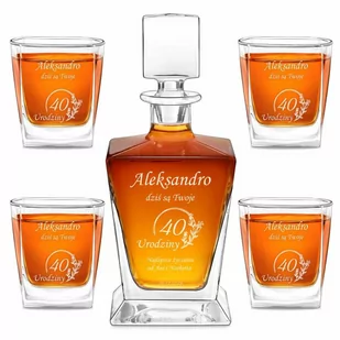 Karafka do whisky pyramid z 4 szklankami capitol i grawerem dla niej na 40 urodziny