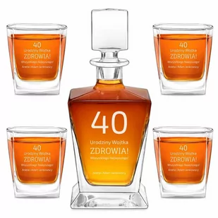 Karafka do whisky pyramid z 4 szklankami capitol i grawerem dla niego na 40 urodziny