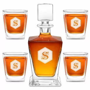 Karafka do whisky pyramid z 4 szklankami capitol i grawerowanym inicjałem dla gentlemana