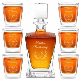 Karafka do whisky pyramid z 6 szklankami capitol i grawerem dla pary na 30 rocznicę