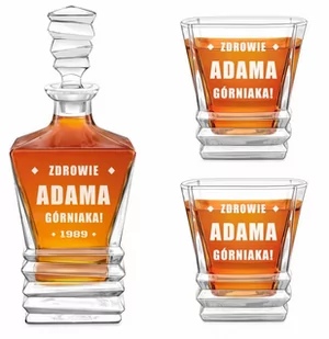 Karafka geometryczna z 2 szklankami i grawerem dla niego na urodziny Planujecie wypić za zdrowie Waszego kolegi, który uzyskał awans w pracy ? A może nie masz pomysłu na upominek dla niego na urodziny ? Jego imieniny już za kilka dni? Szukasz podarku dla konesera whisky na wyjątkową okazję ? Geometryczna karafka wykonana z wysokiej jakości szkła wraz z 2 szklankami i spersonalizowaną dedykacją to znakomity pomysł na upominek dla imprezowicza i konesera whisky . W zestawie znajdują się dwie szklanki o geometrycznym kształcie. Oryginalna dedykacja wykonana techniką grawerowania laserowego z pewnością będzie ciekawą alternatywą dla typowych prezentów. Klasyczna struktura szkła uwydatnia elegancką prezencję upominku. W połączeniu z osobistą dedykacją stanie się niepowtarzalną i zarazem praktyczną pamiątką na długie lata.