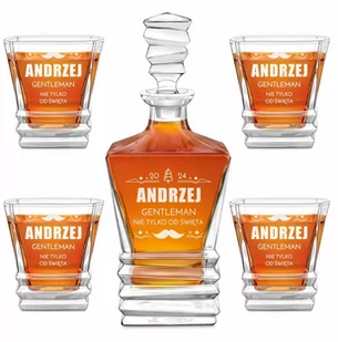 Karafka geometryczna z 4 szklankami i grawerem dla niego na święta On to gentleman nie tylko od święta ? Zupełnie nie wiesz, co kupić dla taty ? Boże Narodzenie spędzasz z rodzicami? Szukasz podarku dla konesera whisky na wyjątkową okazję ? Geometryczna karafka wykonana z wysokiej jakości szkła wraz z 4 szklankami i spersonalizowaną dedykacją to znakomity pomysł na upominek dla imprezowicza i konesera whisky . W zestawie znajdują się 4 szklanki o geometrycznym kształcie. Oryginalna dedykacja wykonana techniką grawerowania laserowego z pewnością będzie ciekawą alternatywą dla typowych prezentów. Klasyczna struktura szkła uwydatnia elegancką prezencję upominku. W połączeniu z osobistą dedykacją stanie się niepowtarzalną i zarazem praktyczną pamiątką na długie lata.