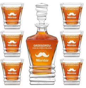 Karafka geometryczna z 6 szklankami i grawerem dla gentlemana Wybierasz prezent dla gentlemana na urodziny ? A może zbliżają się jego imieniny ? On organizuje niezwykłą parapetówkę ? Uważasz, że przyda mu się chwila relaksu? Szukasz podarku dla konesera whisky na wyjątkową okazję ? Geometryczna karafka wykonana z wysokiej jakości szkła wraz z 6 szklankami i spersonalizowaną dedykacją to znakomity pomysł na upominek dla imprezowicza i konesera whisky . W zestawie znajduje się 6 szklanek o geometrycznym kształcie. Oryginalna dedykacja wykonana techniką grawerowania laserowego z pewnością będzie ciekawą alternatywą dla typowych prezentów. Klasyczna struktura szkła uwydatnia elegancką prezencję upominku. W połączeniu z osobistą dedykacją stanie się niepowtarzalną i zarazem praktyczną pamiątką na długie lata.