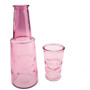 Różowa szklana karafka ze szklanką, 800 ml