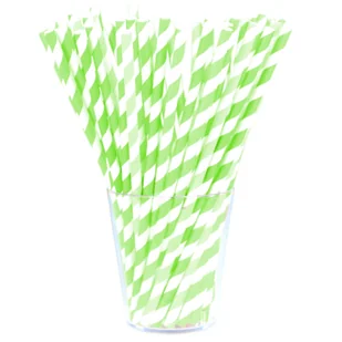 Słomka papierowa w biało-limonkowe paski 12 sztuk