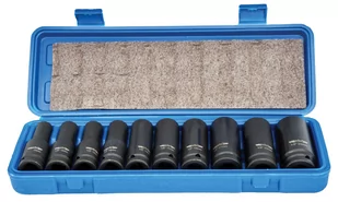 - Zestaw nasadek udarowych 1/2", zawiera 10 sztuk długich nasadek udarowych.