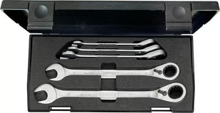 Zawartość: klucze szczękowe z grzechotką oczkową 7R 8, 10, 13, 17, 19.