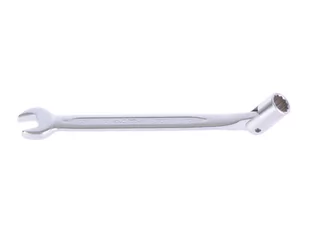 z jednej strony cienki klucz płaski, z drugiej strony część nasadowa 12-kątna obracająca się o 180 stopni