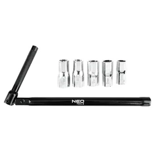 Klucz do kranów NEO TOOLS + 5 kluczy nasadowych 8, 9, 10, 11, 12 mm - Narzędzie do montażu kranów - Idealne do trudno ch miejscNARZĘDZIE DO MONTAŻU KURKÓW: Niezbędne narzędzie do montażu i demontażu kranów, zwłaszcza w łazience, wykonane z wytrzymałej stali węglowej. SKŁADANA KONSTRUKCJA: Umożliwia łatwe dostosowanie klucza do trudno ch miejsc, co ma kluczowe znaczenie podczas pracy w ograniczonych przestrzeniach, np. pod zlewem.