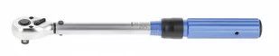Charakterystyka: wykonany ze stali stopowej chromowo-molibdenowej; kwadrat 1/4”, 3/8” i 1/2”; precyzyjny mechanizm zapadkowy z 72 zębami; dokładność ustawień +/- 3%; zakres pracy: 40-220 Nm przełącznik pracy lewe/prawe obroty