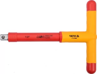 Opis produktu Izolowana rękojeść typu "T" marki YATO YT-21096. Wykonana z wytrzymałej, narzędziowej stali chromowo-wanadowej CrV. Wielokomponentowa rękojeść z certyfikatem VDE zapewnia izolację do 1000 V, dzięki czemu narzędzie może być stosowane podczas pracy przy instalacjach niskonapięciowych. Przeznaczenie / zastosowanie