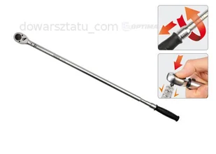 - Na zabierak klucza należy nałożyć odpowiednią nasadkę. Podczas dokręcania osiągnięcie ustawionego momentu jest sygnalizowane kliknięciem klucza. W przypadku usłyszenia lub wyczucia kliknięcia należy zaprzestać dokręcania. Zawartość opakowania - klucz dynamometryczny