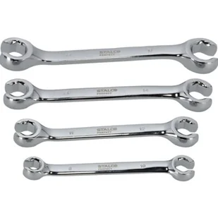 Zestaw kluczy oczkowych półotwartych STALCO PERFECT S-76894 to praktyczny komplet narzędzi, idealny do obsługi nakrętek i połączeń w układach hamulcowych oraz hydraulicznych. Klucze wykonano z wysokogatunkowej stali chromowo-wanadowej, pokrytej powłoką galwaniczną, co zwiększa ich trwałość i odporność na korozję. Zestaw zawiera cztery klucze w popularnych rozmiarach: 8x10, 11x12, 13x14, 15x17 mm.