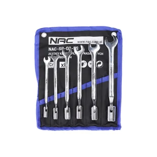Składający się z 6 kluczy płasko-nasadowych przegubowych zestaw NAC umożliwia wykonywanie zadań związanych z odkręcaniem i dokręcaniem nakrętek oraz śrub.